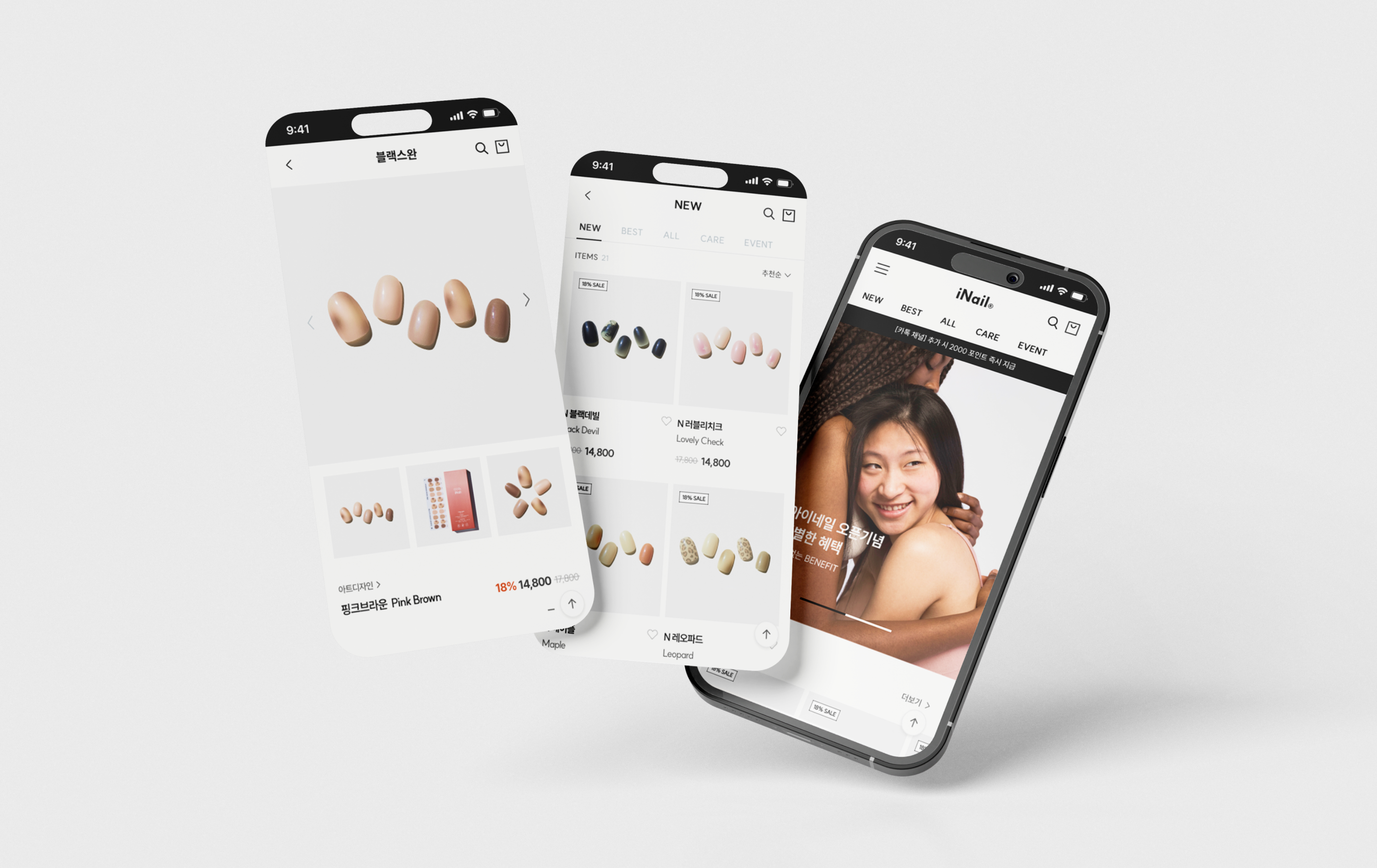 기존 시장에 나와있는 기성화 된 젤네일스티커와는 출발점부터 다릅니다. 품질과 기술력을 모두 갖춘 아이네일의 1:1 맞춤 젤네일 스티커는 개인 손톱의 모양,크기,곡률을 정밀하게 분석하여 맞춤형으로 제작됩니다. 또한 고해상도의 프린팅 기술과 고품질 소재를 사용하여 손톱 표현에 완벽하게 부착되고 오랫동안 유지되는 지속력을 자랑하며 간편하고 쉬운 주문제작 방식으로 사용자들에게 편리하고 빠른 사용성을 제공합니다.
